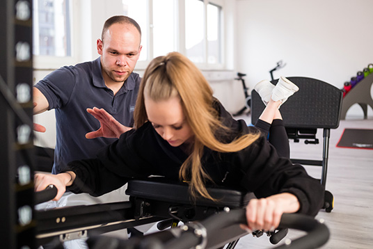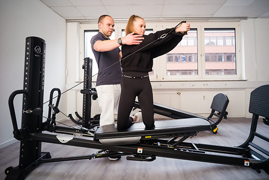 Wir setzen multifunktionelle Geräte von Total Gym ein. Mehr als 300 Übungen sind an diesen Geräten möglich